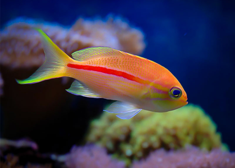 آنتیاس خط قرمز نسبتا کم یاب در اعماق 25-150 متر زندگی میکنند و رژیم غذایی طبیعی آنها زئوپلانکتون می باشد. باتوجه به اینکه آنها در اعماق نسبتا زیاد زندگی میکنند بنابراین باید آکواریومی با روشنایی کم تا متوسط را برای آنها در نظر بگیرید.