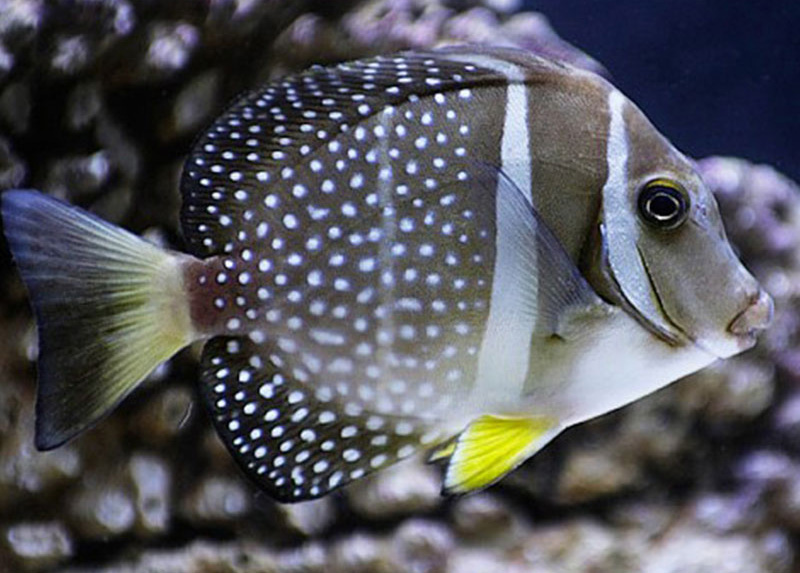 جراح ماهی موستارت یکی از گونه های کمیاب در بازار ایران محسوب می شود . این ماهی که نام دیگر آن جراح خال سفید می باشد را میتوان هم در آکواریوم های فقط ماهی و هم در آکواریوم های مرجانی براحتی نگهداری کرد . برای تغذیه این ماهی در آکواریوم میتوان از طیف گسترده ای از غذاهای گیاهی و همچنین از غذاهای گوشتی زنده یا منجمد شده استفاده کرد.