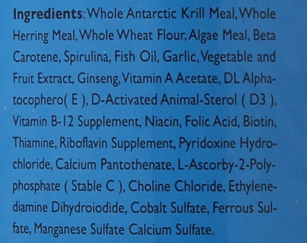 تهیه شده از مواد اولیه مرغوب با پروتئینی بالا، مانند؛ کریل، ماهی مرکب، روغن ماهی و…. که به راحتی قابل هضم است و همچنین چند ماده طبیعی تقویت کننده رنگ برای یک رژیم غذایی متعادل که باعث تقویت عملکرد ایمنی موجودات می شود.