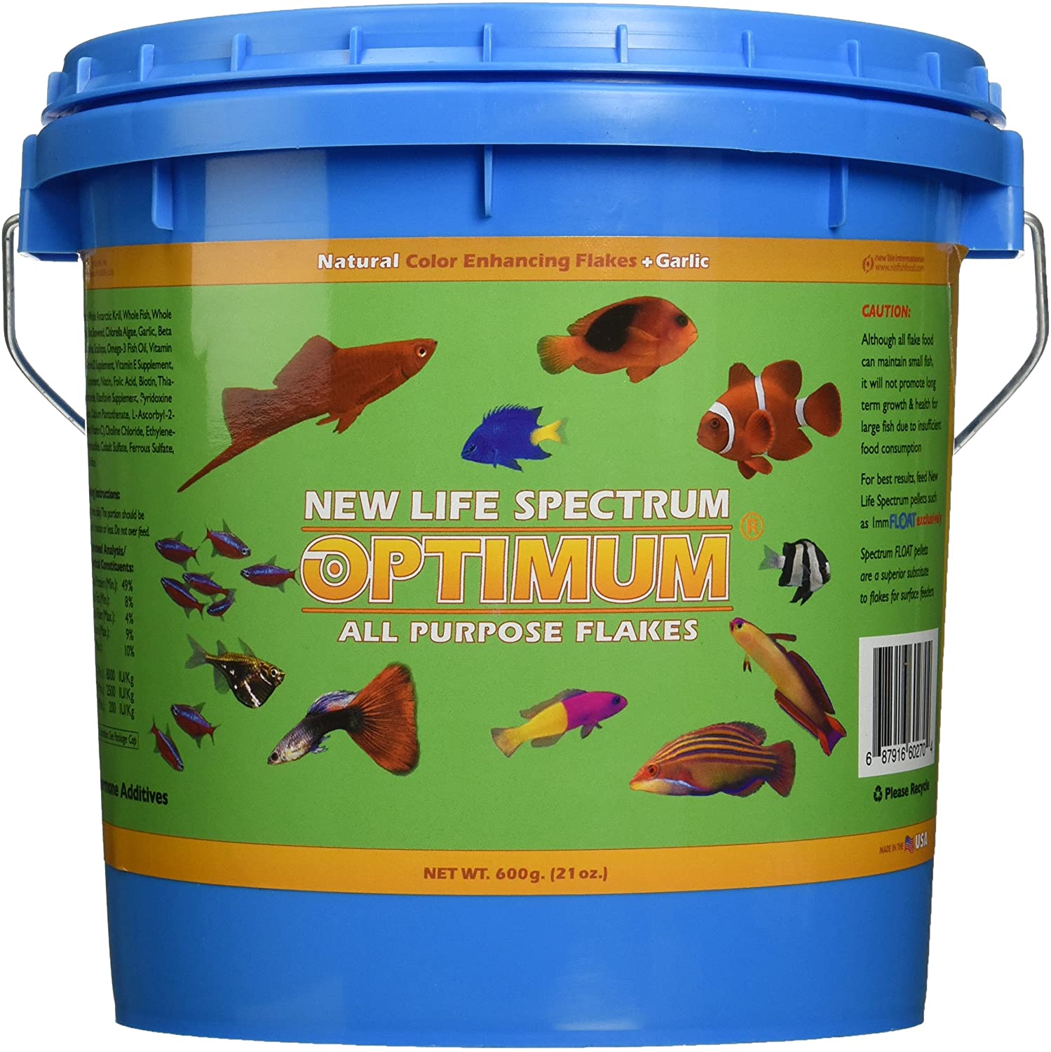 غذای پولکی غنی شده عصاره سیر یک غذای روزانه بسیار عالی برای انواع ماهیان بخصوص ماهیان کوچک دریایی. این غذا حاوی مقادیر بالایی پروتئین، عصاره سیر و رنگدانه های طبیعی است که برای رشد و درخشان تر شدن رنگ بدن ماهی ها بسیار موثر است.