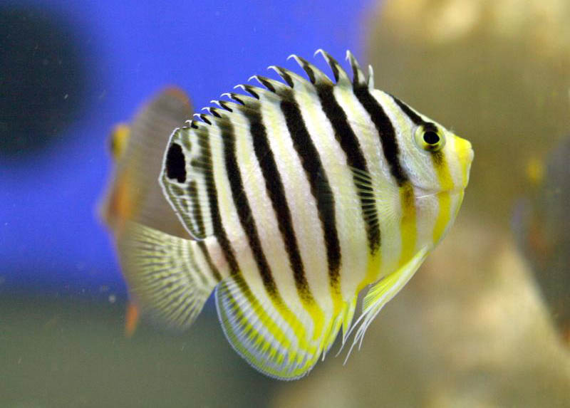 فرشته ماهی راه راه یک فرشته کوتوله بسیار زیباست که توجه هر کسی را بخود جلب می کند . توصیه می شود که این ماهی را به یک آکواریوم که بخوبی جا افتاده است معرفی کنید زیرا این ماهی علاقه زیادی دارد که از جلبک هایی که بر روی سنگ ها وجود دارند تغذیه کند و از این رو این ماهی می تواند یک گزینه مناسب برای از بین بردن جلبک های مزاحم باشد .