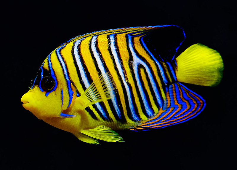 نوع جوان این ماهی دارای یک خال شبیه به چشم بر روی انتهای باله پشتی خود است و از رنگبندی کمتری نسبت به بزرگسالان برخوردار است با اینحال نوع جوان آن نیز بسیار مورد توجه است.