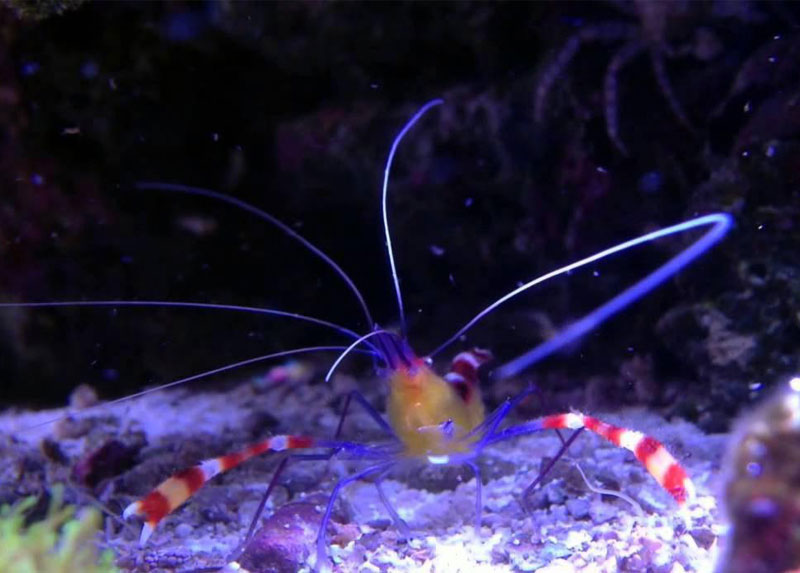 میگوی پا آبی نوار زرد جانوری است که بسیار به تمیز بودن اهمیت می دهد و همواره در حال نظافت محیط اطراف و همچنین نظافت خود می باشد . این میگو می تواند در نظافت محیط آکواریوم نقش بسیار مهمی داشته باشد .