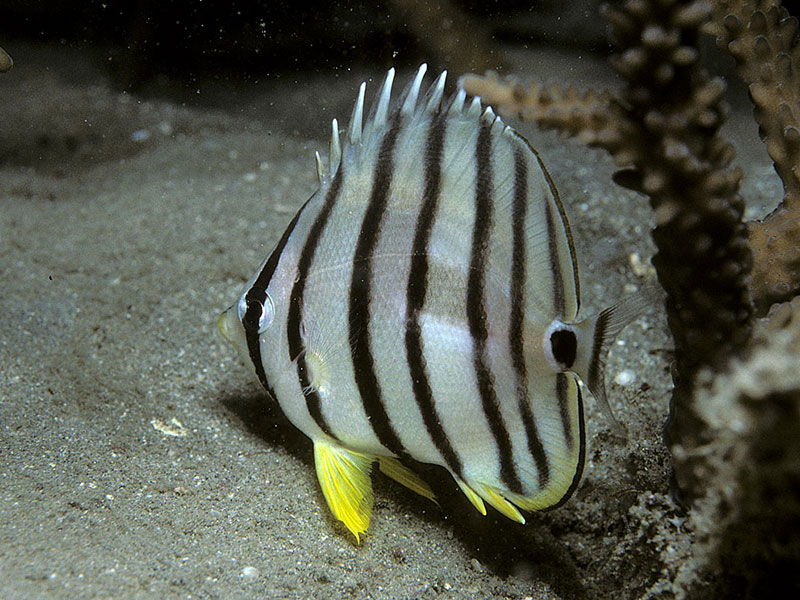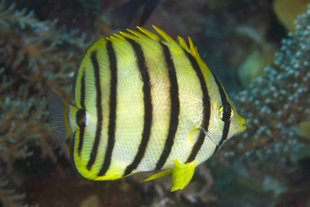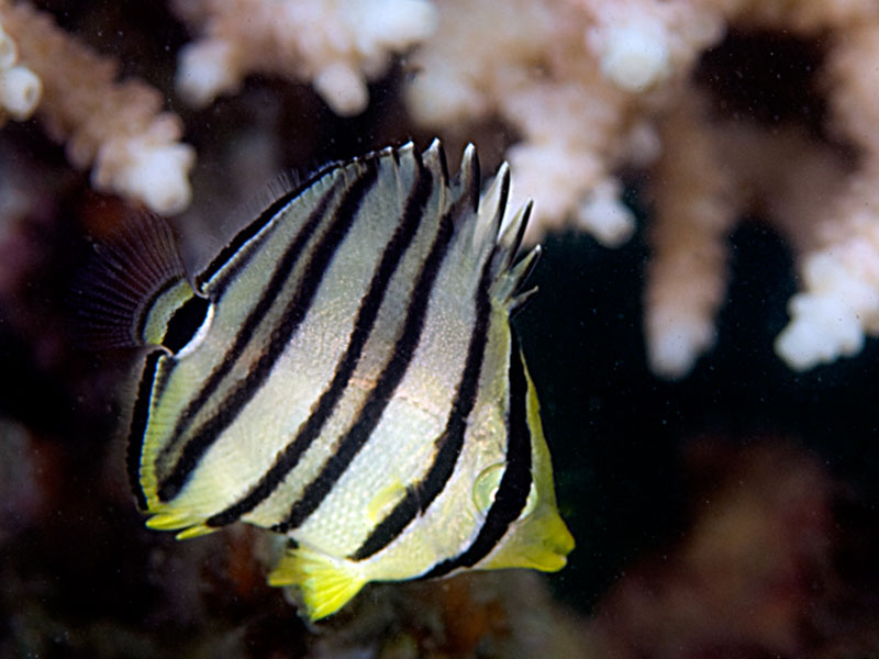 نام انگلیسی Eight-Stripe Butterflyfish–Yellow eight banded butterfly