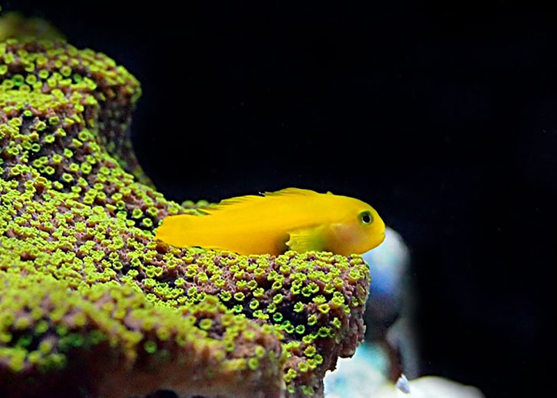 گابی دلقک زرد عمدتا در طبیعت در بین مرجانهای آکروپورا دیده می شود .  این ماهی دارای رفتار صلح آمیزی است و باید با ماهیانی که دارای رفتار صلح آمیز و شنای آهسته ای هستند نگه داشته شود .